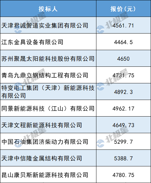 7月8日,中国石油工程建设有限公司新能源项目2024年-2026年光伏支架(二级物资)集中采购(新增)中标候选人公示,新增10家入围企业,包括天津君诚管道实业集团有限公司、江东金具设备有限公司、苏州聚晟太阳能科技股份有限公司、青岛九鼎立钢结构工程有限公司、特变电工集团(天津)新能源科技有限公司、同景新能源科技(江山)有限公司、中国石油集团济柴动力有限公司等。