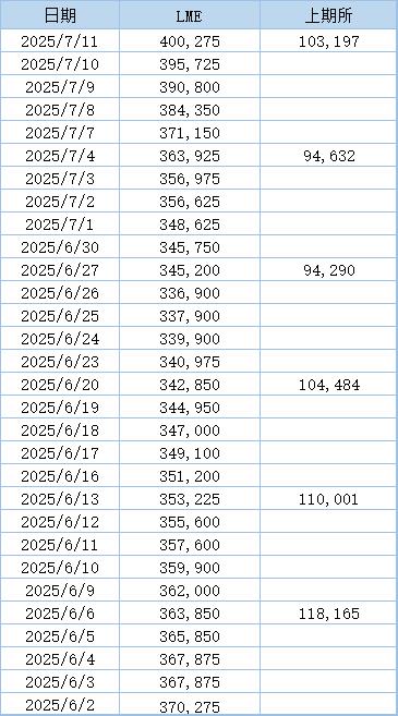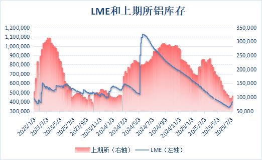 以下为2025年6月以来LME和上期所铝库存数据:(单位:吨)