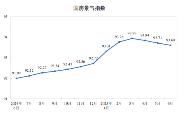 6月份,房地产开发景气指数(简称“国房景气指数”)为93.60。