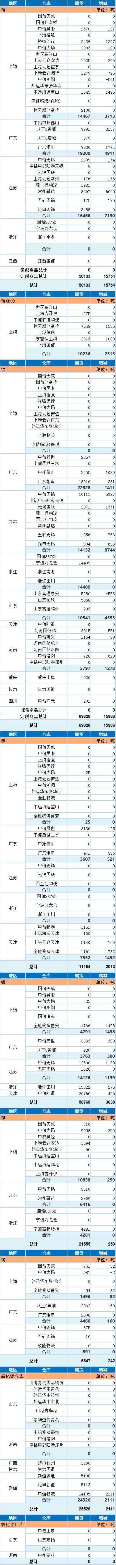 7月15日上海期货交易所金属库存日报