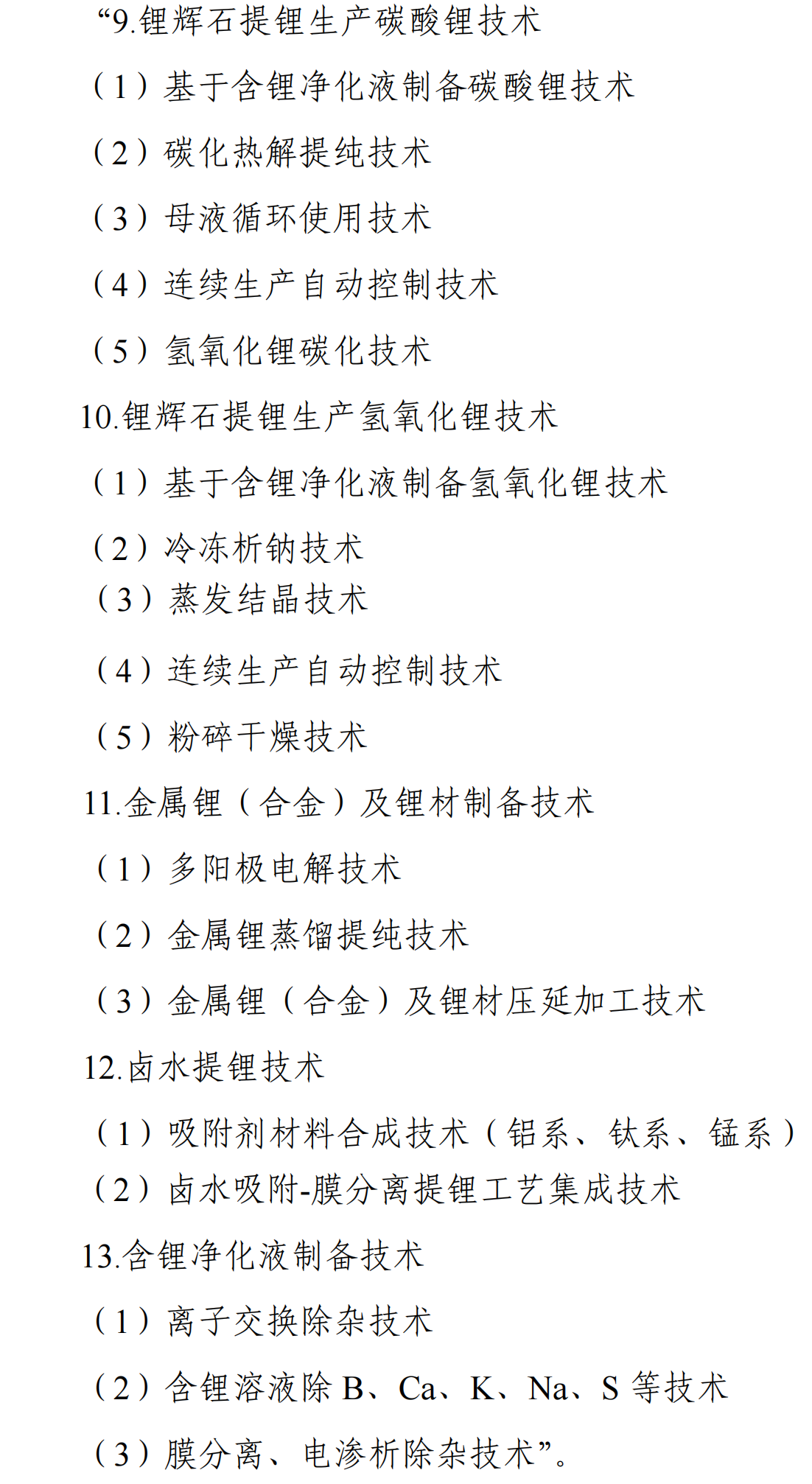有色金属冶炼和压延加工业中提到新增提锂技术出口控制要点,涵盖了从锂辉石提锂到金属锂制备的完整产业链,包括锂辉石提锂生产碳酸锂技术、锂辉石提锂生产氢氧化锂技术、金属锂(合金)及锂材制备技术、卤水提锂技术、含锂净化液制备技术等。具体如下: