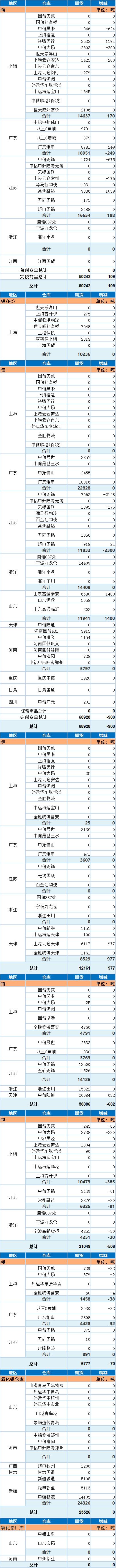 7月16日上海期货交易所金属库存日报