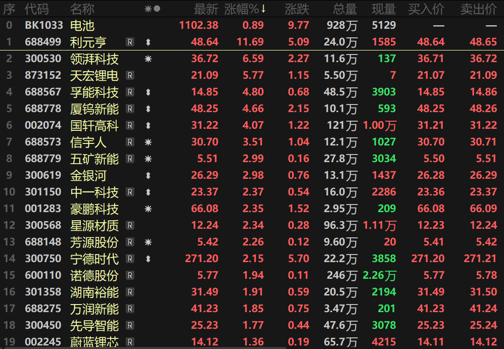 SMM 7月18日讯:近两个交易日,电池及固态电池板块盘中一同走高,电池指数盘中一度涨逾2%。个股方面,领湃科技、孚能电池等盘中涨逾6%,天宏锂电、利元亨等多股纷纷跟涨。