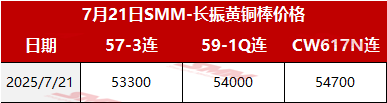 【SMM价格】2025年7月21日长振黄铜棒价格