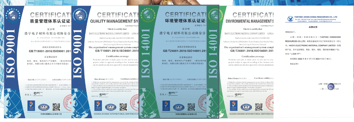 在过去的几年中,我们了解技术要求,产品质量以及服务能力是我们建立对客户牢固信任的关键。多年来,我们一直致力于无铅焊锡材料的研究和开发,以焊锡线、锡膏、锡条为主要产品。公司这些年来的产品研究和开发,使市场占有率提升了5倍。其中,Sn-Cu-X 系列焊锡条得到了客户的广泛认可。