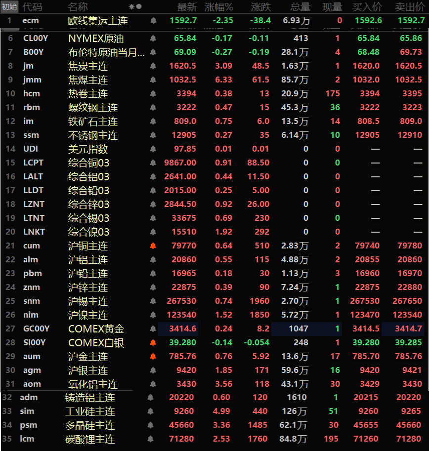 隔夜贵金属方面,COMEX黄金涨1.55%,COMEX白银涨2.02%。国内方面,沪金涨0.76%,沪银涨1.85%。