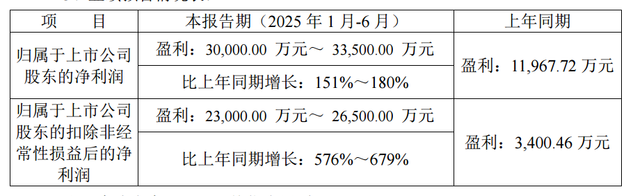 金力永磁日前发布的半年度业绩预告显示:预计2025年上半年归属于上市公司股东的净利润为3亿元至3.35亿元,同比增长151%至180%。扣除非经常性损益后的净利润为2.3亿元至2.65亿元,同比增长576%至679%。公司营业收入预计约35亿元,同比增长4%至5%。非经常性损益(税后)约为7000万元,去年同期为8567.26万元。