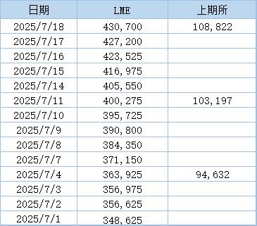 伦敦金属交易所(LME)公布数据显示,6月26日伦铝库存降至近三年新低后库存有所回升,上周库存继续累积,最新库存水平为430,700吨,增至三个月新高。