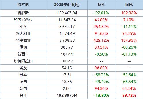 以下为根据海关总署官网数据整理的2025年6月原铝进口分项数据一览表: