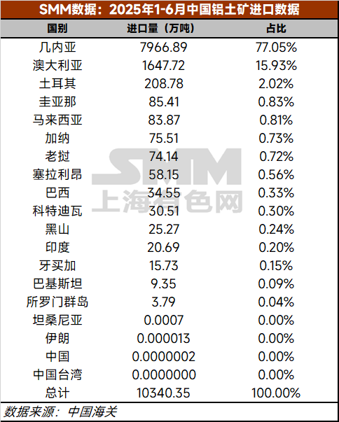 铝土矿主流进口来源国方面: