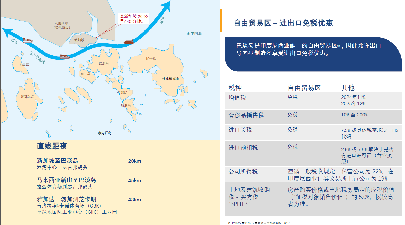 巴淡岛是印度尼西亚唯一的自由贸易区(1),因此允许出口导向型制造商享受进出口免税优惠。