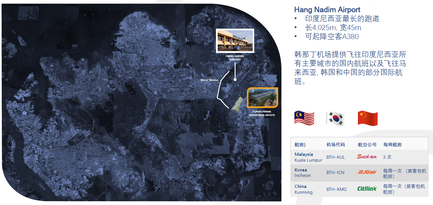 地理意义:靠近新加坡和马来西亚,与雅加达到勿加泗的距离相同,印度尼西亚自由贸易区(巴淡岛, 民丹岛, 卡里蒙岛)。
