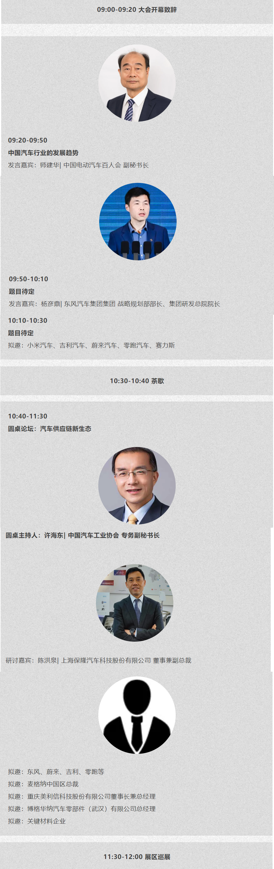 企业家高层论坛:作为大会的主论坛,聚焦全球汽车产业格局重构、技术革命与政策变局下的战略抉择。展开高层对话与趋势研判,引领中国汽车产业链在全球化与高质量发展浪潮中抢占先机。