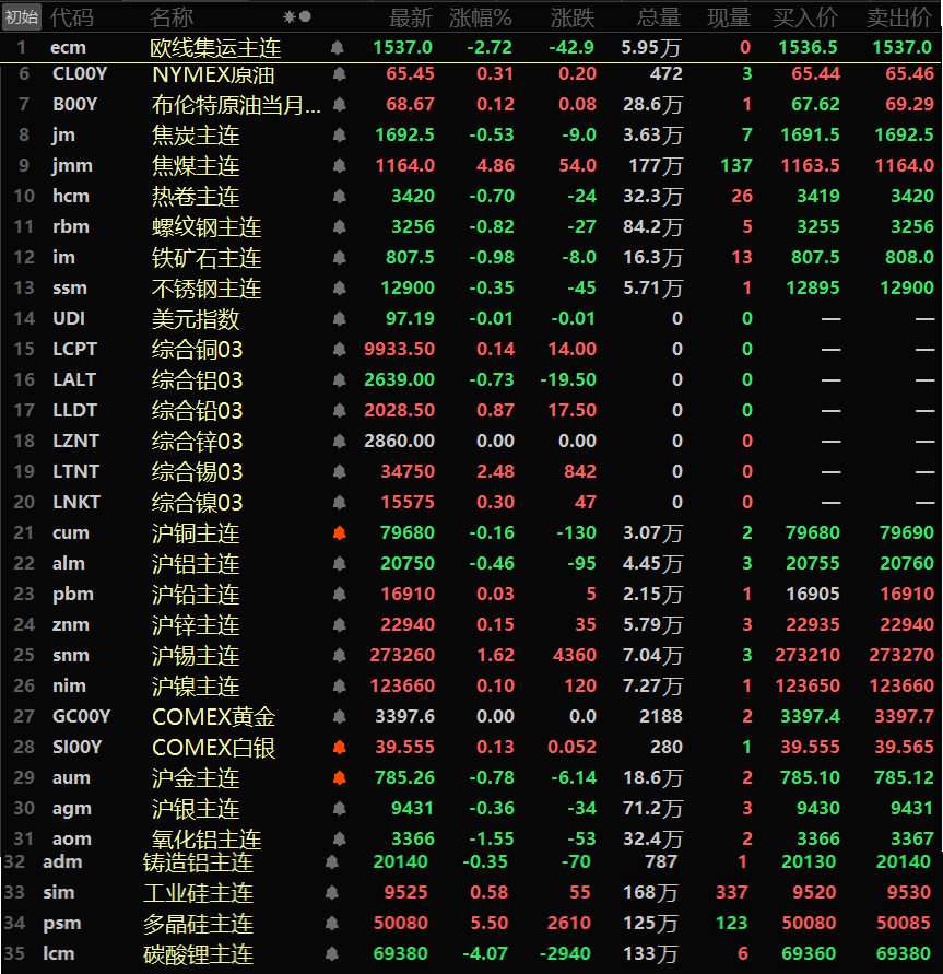 隔夜黑色系方面普跌,铁矿跌0.98%,螺纹跌0.82%,热卷跌0.7%。双焦方面,焦煤涨4.86%,焦炭跌0.53%。