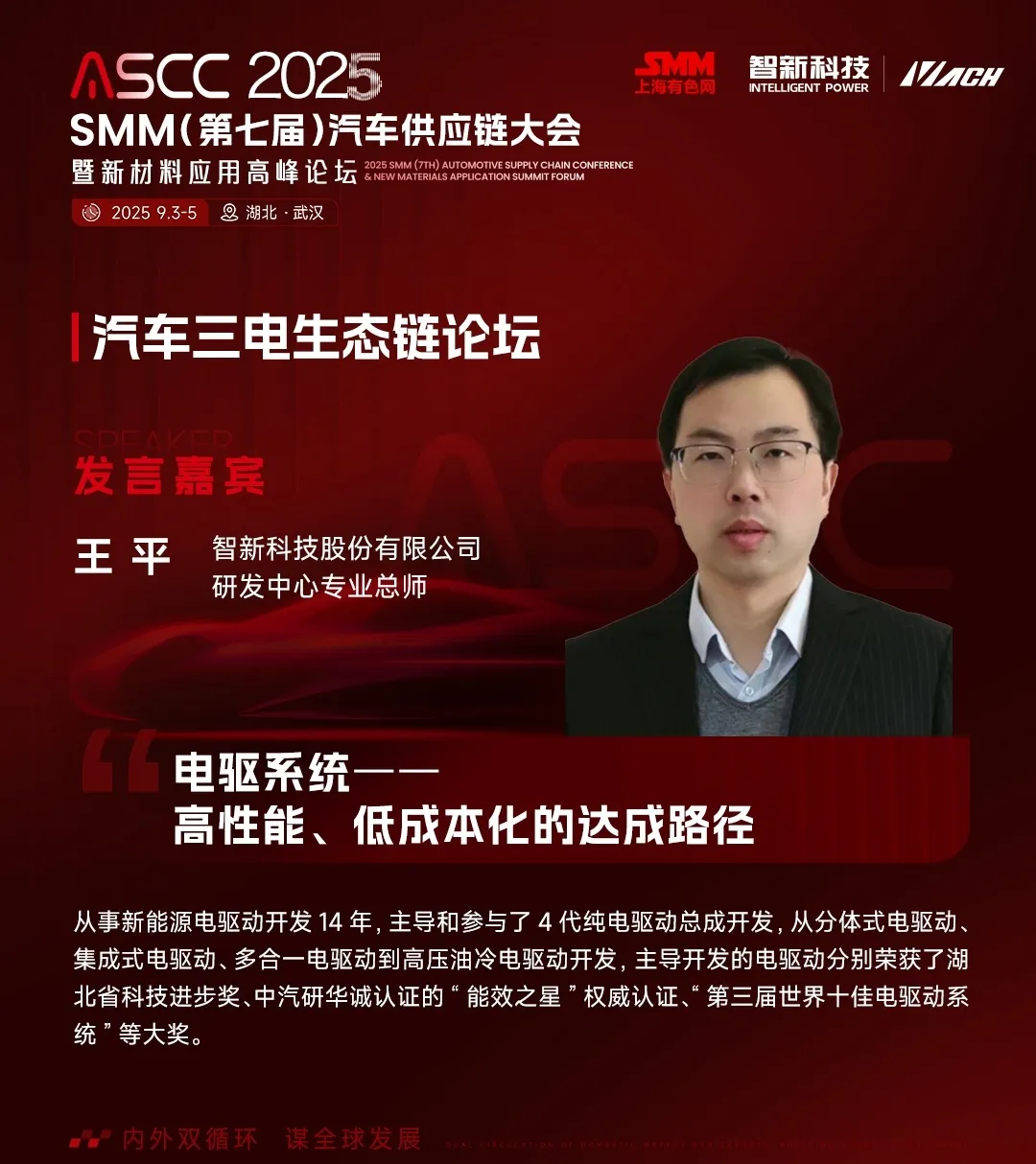 在2025年ASCC · SMM汽车供应链大会上,智新科技股份有限公司-研发中心专业总师-王平将带来精彩分享——