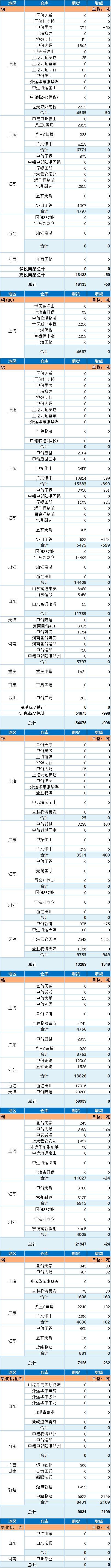 SMM网讯:以下为上海期货交易所7月25日金属库存日报: