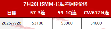 【SMM价格】2025年7月28日长振黄铜棒价格
