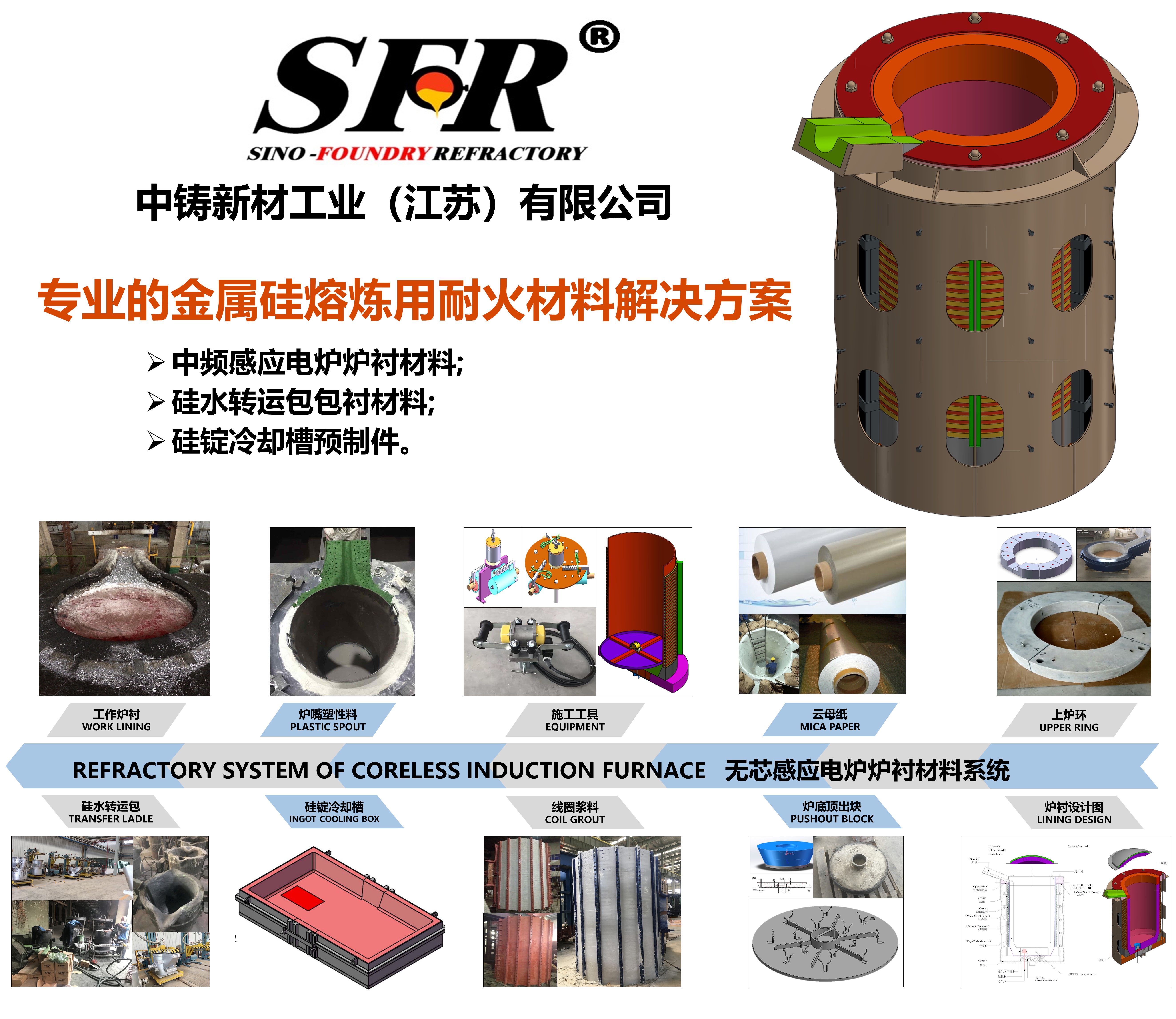 中铸新材工业依托自身强大的耐火材料研发能力和深厚的专业技术知识以及多年现场耐材使用服务经验,对硅金属熔炼工艺(特别是中频炉熔炼工艺)进行了比较深入的研究,并开发出了一系列的耐火材料产品,为硅固废料的利用提供安全,可靠,高性价比的耐火材料解决方案。中铸新材工业的耐材产品在光伏行业含硅固废回收行业有诸多成功的案例,这次公司的技术团队将给本次峰会带去最新研究成果和成功使用案例。
