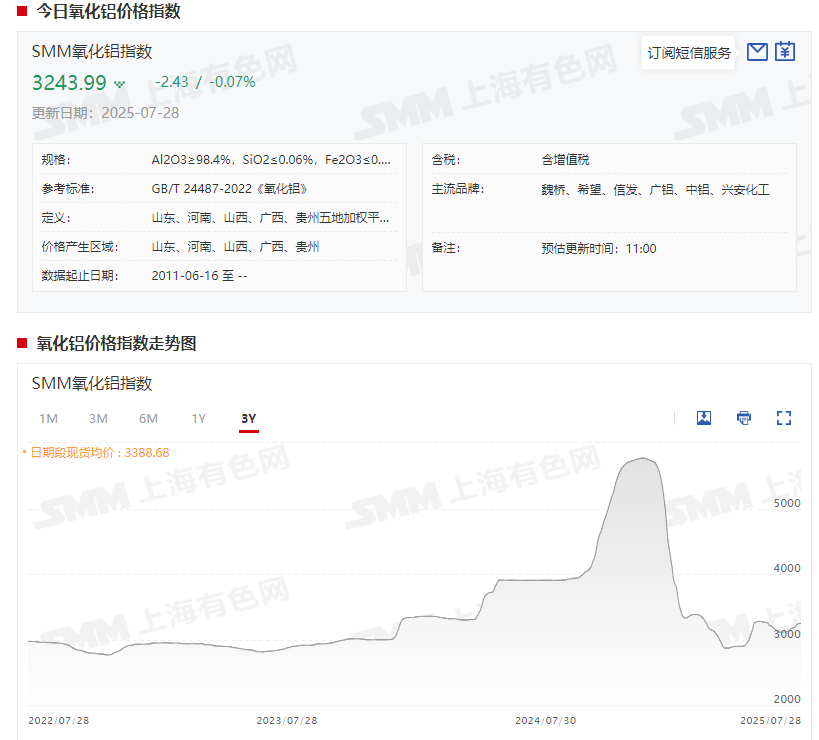 2025年二季度氧化铝现货报价方面,氧化铝现货均价报3056.5元/吨,2024年二季度氧化铝现货均价报3654.88元/吨,较去年同期下跌598.38元/吨,跌幅达16.37%。