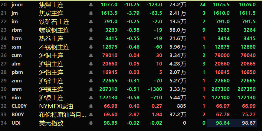 隔夜黑色系均飘绿,铁矿跌0.25%,不锈钢跌0.46%,螺纹钢跌0.58%,热卷跌0.55%。双焦方面:焦煤延续前一个交易日的跌势继续大幅下跌10.25%,焦炭跌3.79%。