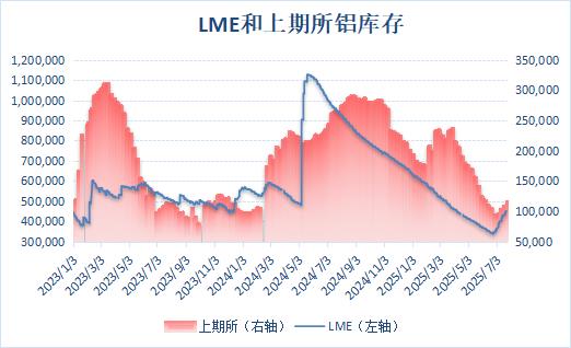 上期所公布的数据显示,7月25日当周,沪铝库存继续累积,目前已连增四周,周度库存增加6.4%至115,790吨,刷新逾一个月新高。