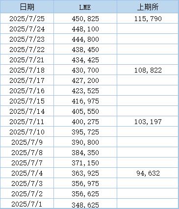 伦敦金属交易所(LME)公布数据显示,6月26日伦铝库存降至近三年新低,而后库存连续回升,上周库存继续增加,最新库存水平为450,825吨,增至三个半月新高。