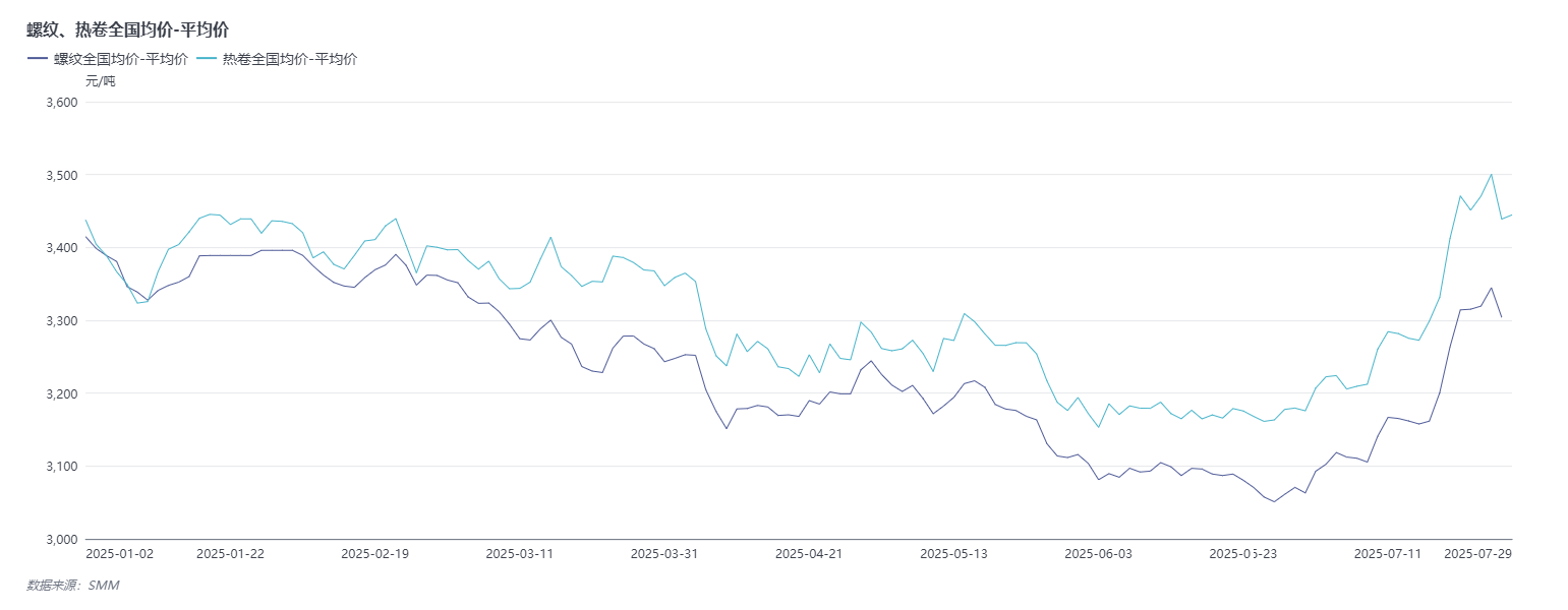 工信部在部署下半年重点工作时明确强调,要巩固对新能源汽车、光伏等行业“内卷式”竞争的整治成效,并推动落后产能退出。这一政策导向进一步强化了市场对钢铁行业供给侧优化的预期。与此同时,生态环境部3月发布的《全国碳排放权交易市场覆盖钢铁、水泥、铝冶炼行业工作方案》在7月持续释放影响——钢铁行业纳入全国碳市场后,通过配额分配与交易机制,将加速落后产能出清,推动全行业向绿色低碳转型。在政策预期、行业自律及产能管控等多重因素共同作用下,螺纹钢、热卷等期货品种于7月29日迎来上涨,截至7月29日收盘,螺纹钢主连涨1.98%,热卷涨主连涨2.01%。