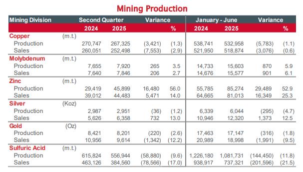 墨西哥集团第二季度锌产量总计为45,899吨,较2024年同期增长56%,受Buenavista Zinc矿场的运营和该单位更高的矿石含量推动。