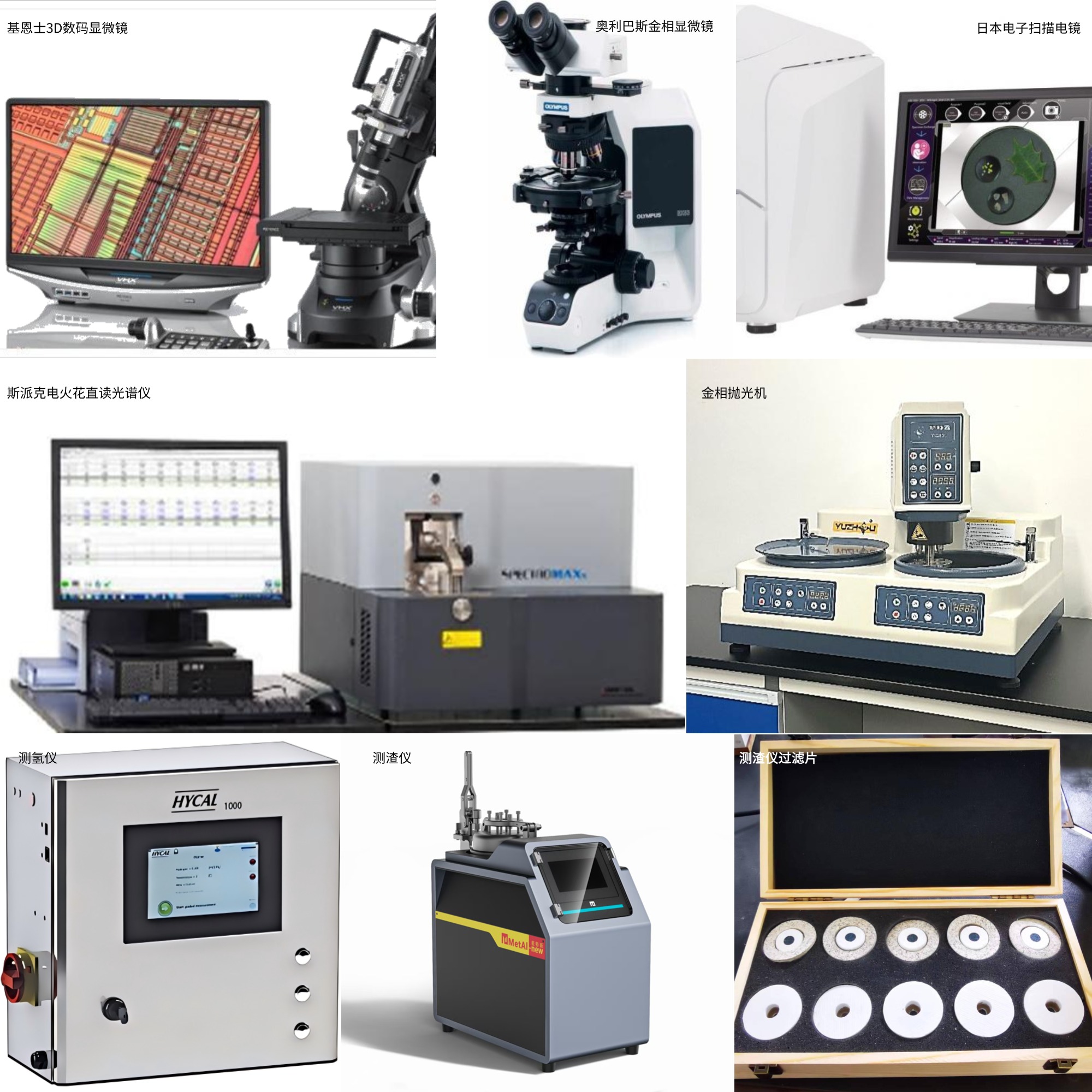 公司除拥有世界先进的3D数码显微镜、金相显微镜、扫描电镜外,还拥有金相抛光机和进口德国斯派克电火花直读光谱仪等金属物理机械性能检测设备;PreFA测渣仪、Hycal测氢仪等铝熔体相关检测试验设备,台式光谱分析仪、万能实验机、热物相分析等金属熔体相图分析设备,使检测质量达到国内领先、世界先进的水平。