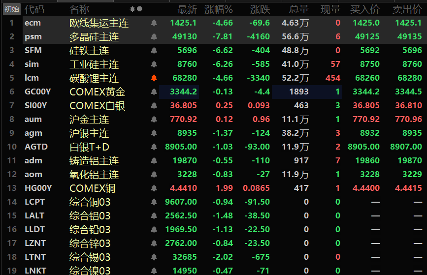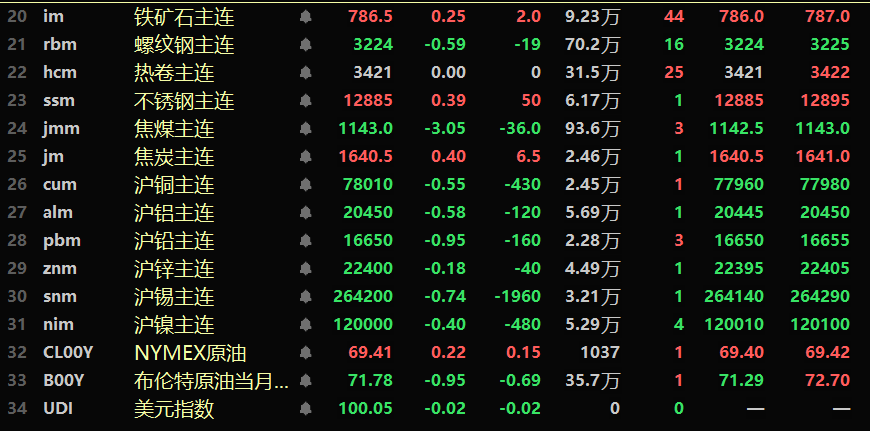 金属市场方面: