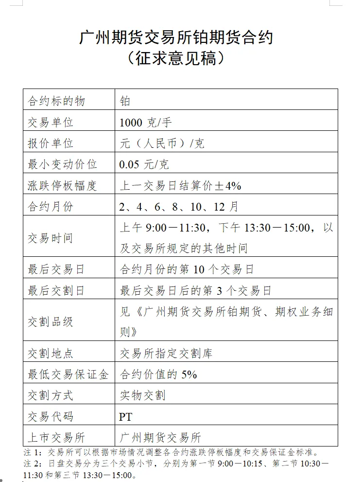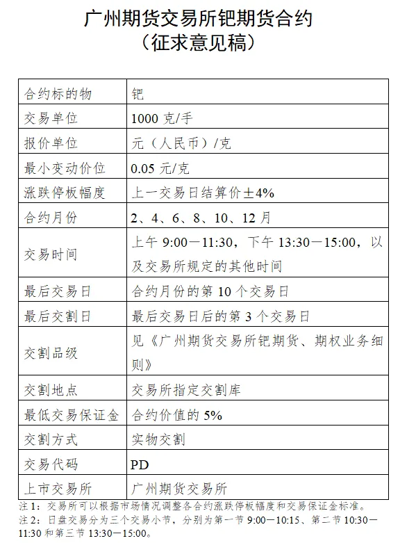 为充分听取市场各方意见,进一步完善铂、钯期货和期权合约及相关规则,确保铂、钯期货和期权合约上市后平稳运行、逐步发挥功能,7月31日,广期所发布公告,就铂、钯期货和期权合约及相关规则公开征求意见。