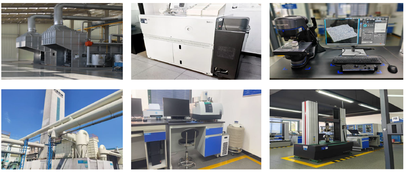 公司拥有生产炉组14台/套,环保设备6套,产能达到20万吨;公司研发检测实验中心,拥有光谱分析仪、金相显微镜、拉力试验机等多台/套检测、试验设备,具备了生产在线快速检测和新产品试制能力。