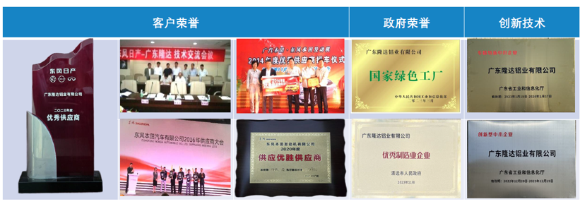 公司以 “比别人多努力一点,和别人多合作一点”为宗旨,以“精专细透、至诚服务”为质量方针,并被政府评为国家绿色工厂、优秀制造业企业等称号,并多次获得东风日产、东本发动机等客户的优秀供应商奖项,共获得荣誉称号60余项。