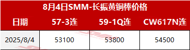 【SMM价格】2025年8月4日长振黄铜棒价格