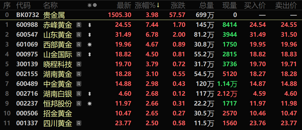 股市方面:8月4日贵金属板块走强,截至8月4日收盘,贵金属板块涨3.98%,个股方面:赤峰黄金涨7.44%,山东黄金、西部黄金、山金国际以及晓程科技等涨幅居前。