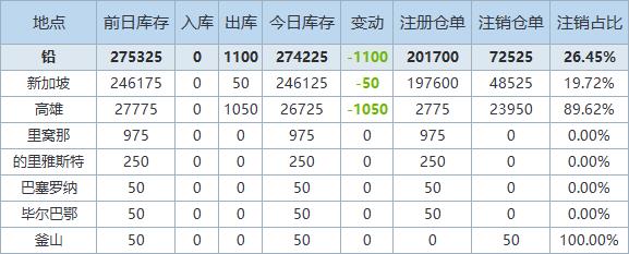 8月1日LME金属库存及注销仓单数据