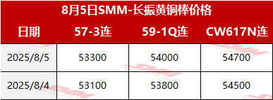 【SMM价格】2025年8月5日长振黄铜棒价格