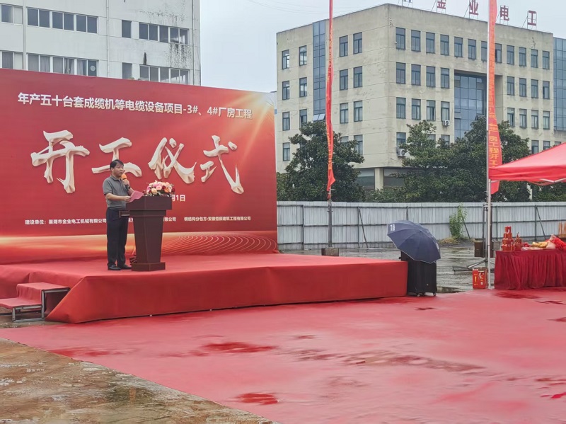 2025年8月1日,巢湖市金业电工机械有限公司(以下简称"金业电工")隆重举行年产50台套成缆机等电缆设备项目3#、4#厂房工程开工仪式。