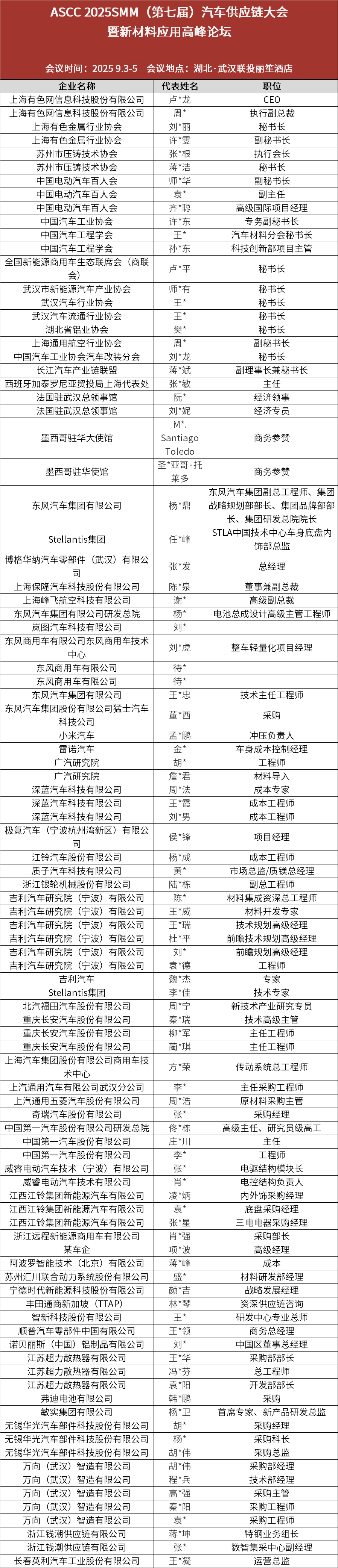 【会议名称】ASCC 2025 SMM(第七届)汽车供应链大会暨新材料应用高峰论坛