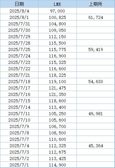 以下为2025年7月以来LME和上期所锌库存数据:(单位:吨)