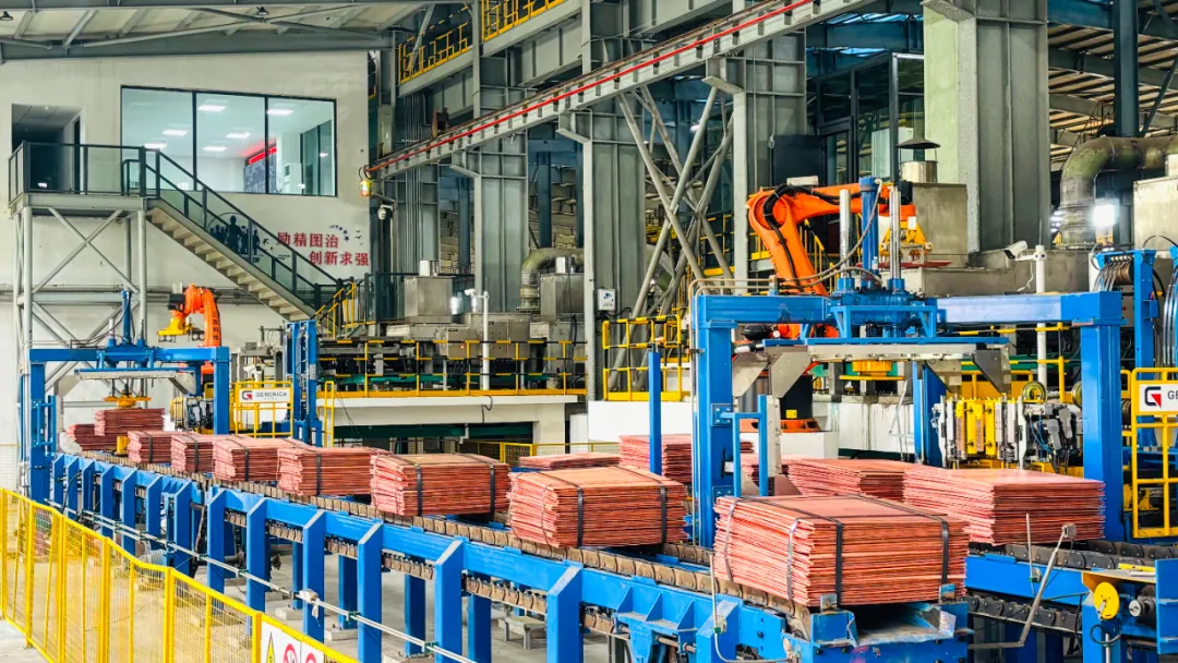 该项目创新使用高杂阳极铜电解系统,通过高杂低电流密度工艺提升了高杂原料的适应能力;采用“原生+再生”双轨模式,在减少对原生铜矿依赖的同时,有效增强了资源保障能力与成本竞争优势;选用回转式阳极炉、RGV智能转运系统等核心设备和智能装备,能耗进一步降低,有效提升了生产效率。
