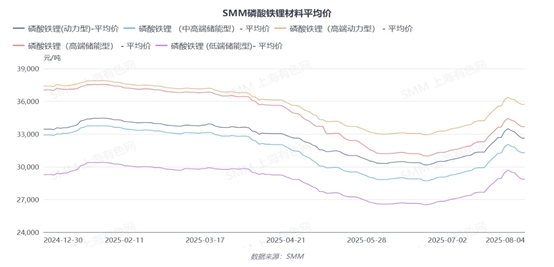 从价格方面来看,磷酸铁锂材料打包加工费在2025年Q1谈涨一波过后,在Q2基本维持稳定。2025年H1,SMM磷酸铁锂价格整体走势依然主要跟随碳酸锂价格波动,作为关键原料作为支撑,碳酸锂在Q2出现持续快速下降的趋势,导致磷酸铁锂材料价格也呈现大幅下跌趋势,平均跌幅超3000元/吨。加工费(基价)在Q1涨过一到两轮后,在Q2基本上没有太多变化。