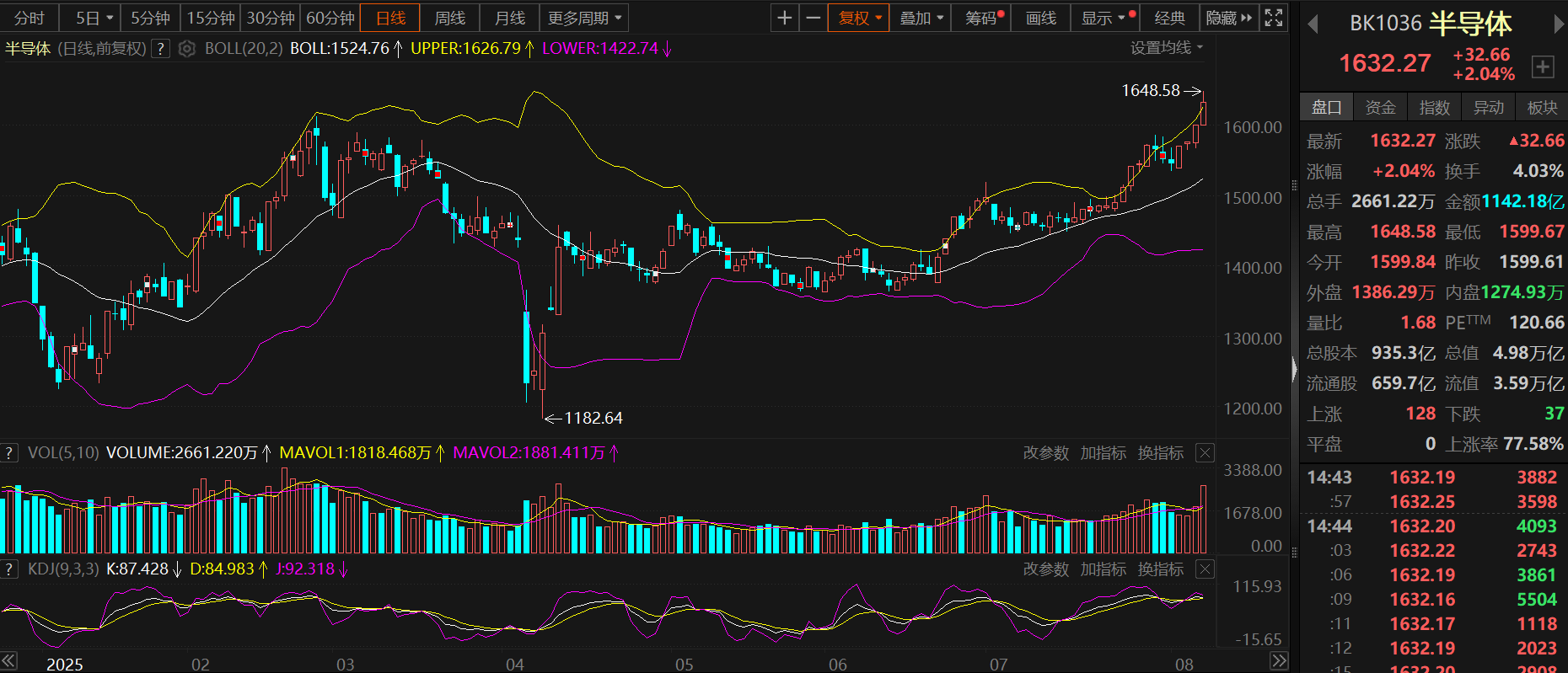 SMM 8月7日讯:8月7日,受特朗普表示将对芯片和半导体征收100%关税的消息刺激,半导体板块开盘迅速拉升,指数盘中一度冲至1623.56的高位,刷新2021年12月以来的近四年新高点。