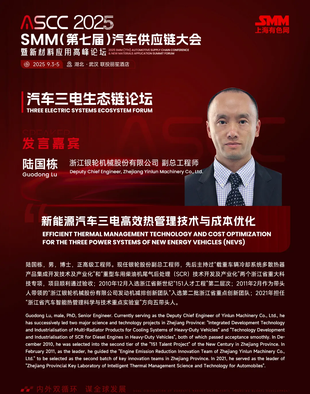 在本届ASCC汽车供应链大会现场,浙江银轮机械股份有限公司 副总工程师 陆国栋 将带来主题分享——