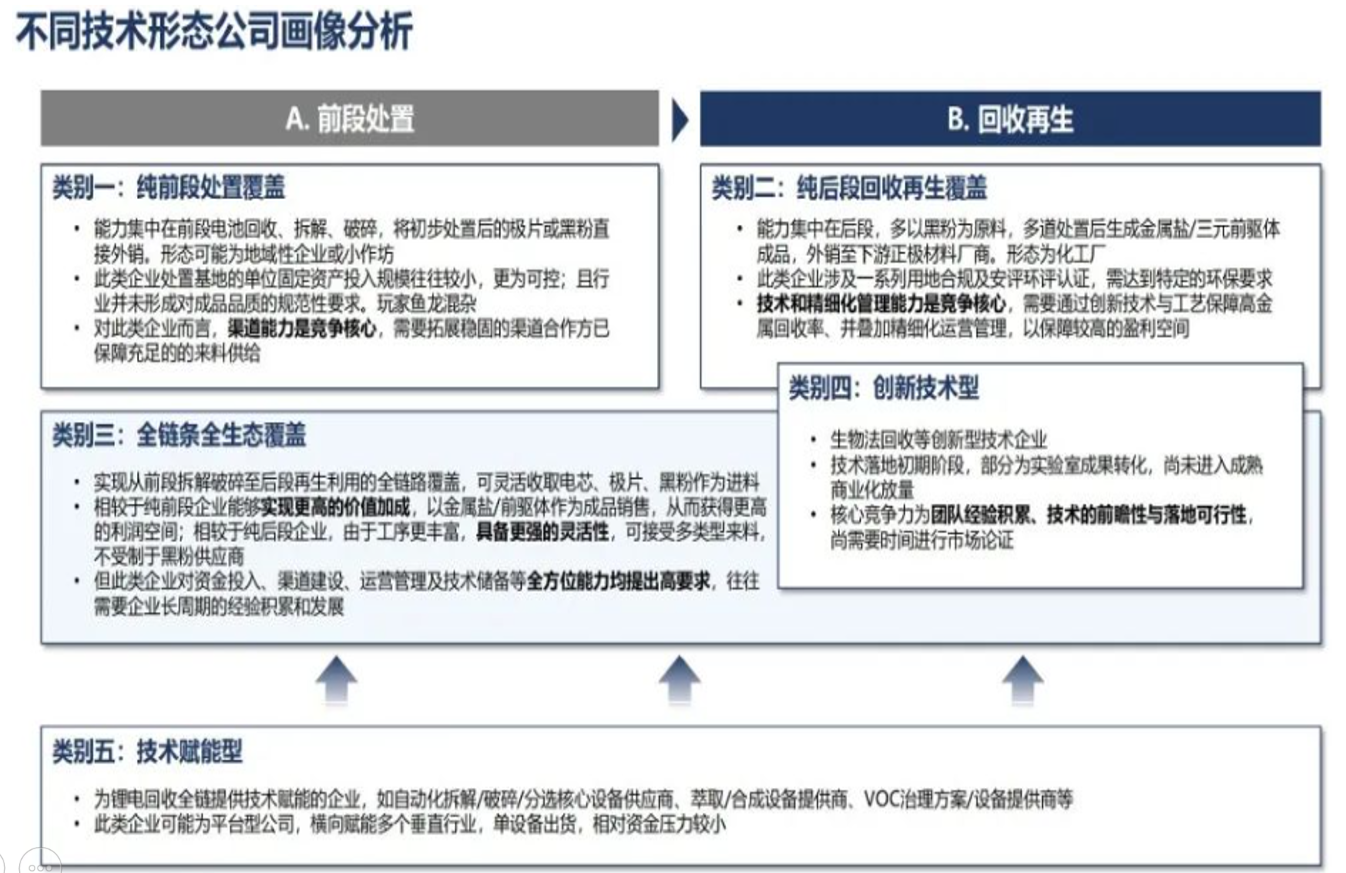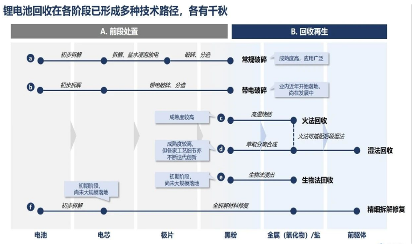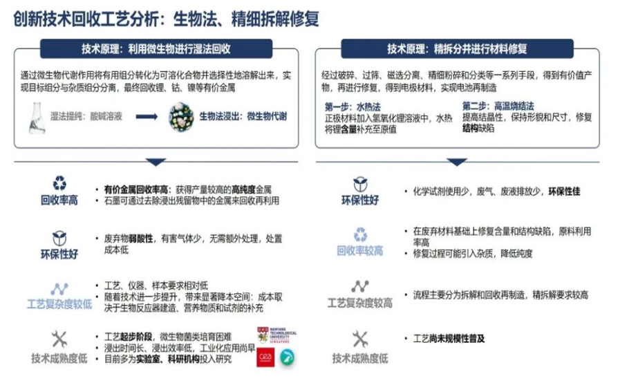 强化与提升回收技术:包括提升拆解环节的自动化水平,强化梯次利用环节的检测与安全评估能力,提高再生利用环节的金属提取与原材料处理工艺能力。