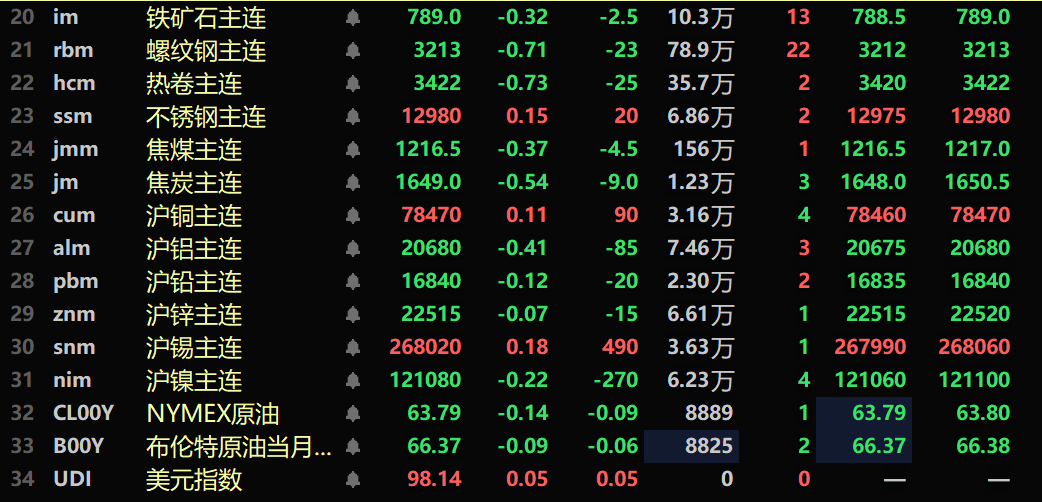 黑色系多飘绿,铁矿跌0.32%,螺纹跌0.71%,热卷跌0.73%。不锈钢涨0.15%。双焦方面:焦煤主力合约跌0.37%,焦炭主力合约跌0.54%。