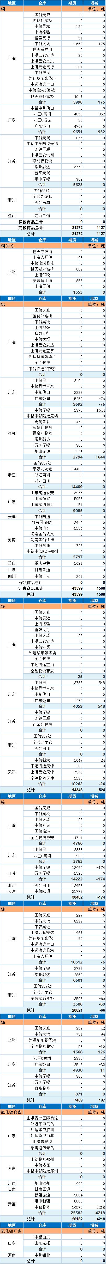 11月20日上海期货交易所金属库存日报