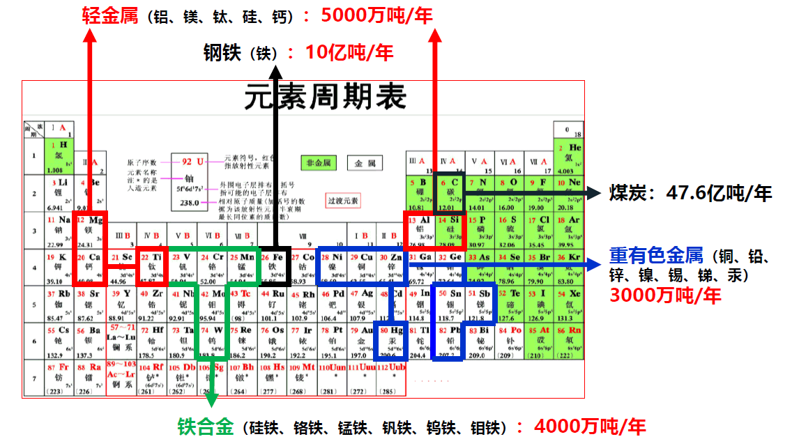 2024年我国粗钢产量10.05亿吨,十种有色金属(铝、铜、锌、铅、镍、锡、锑、汞、镁、钛)合计产量7919万吨。十种有色金属中铝、铜、锌、铅四种金属产量占总产量的91%,其中金属铝产量4400万吨,金属铜产量1364万吨,锌产量684万吨,铅产量764万吨。