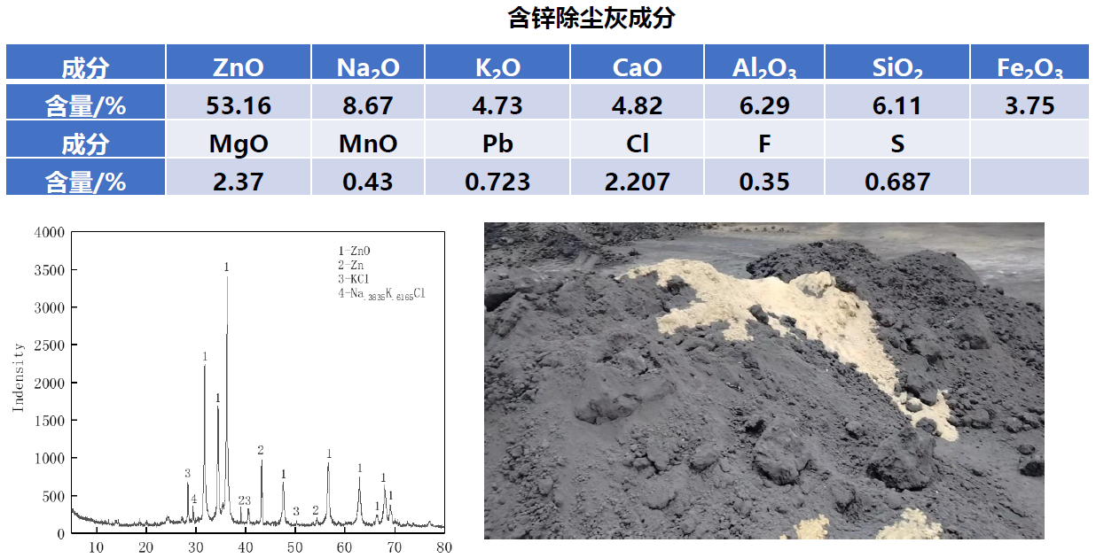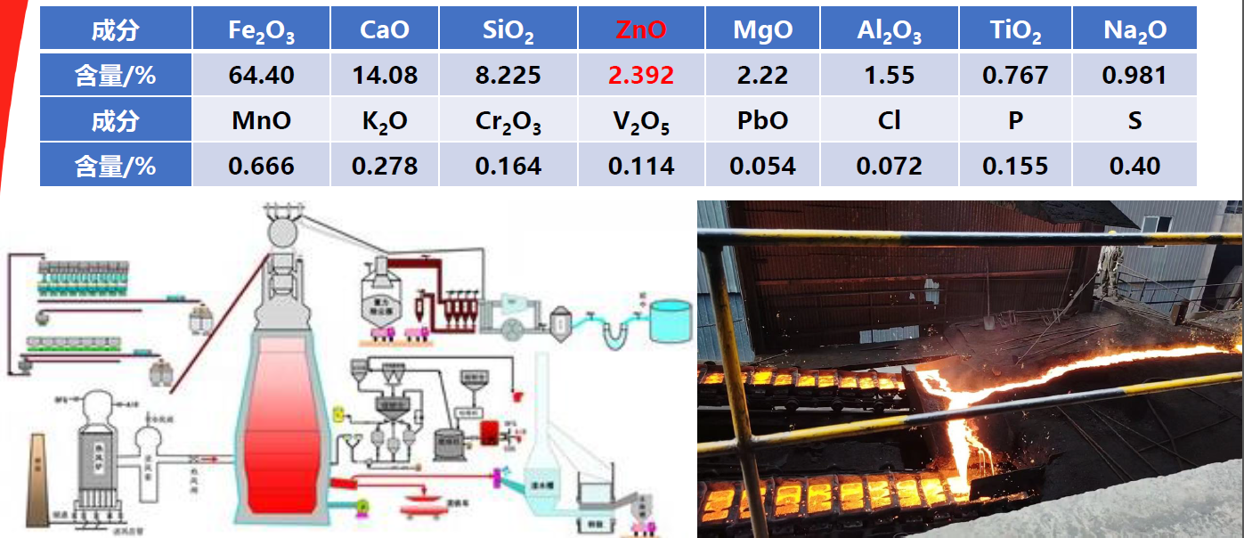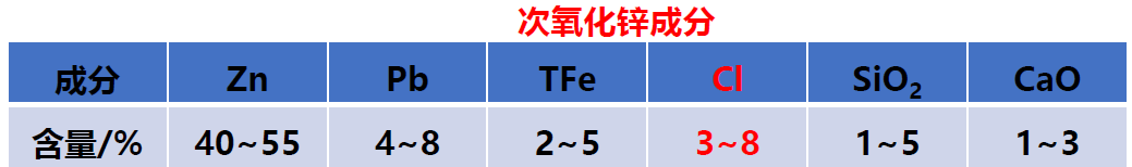 (2)对原料中Zn品位要求高,要求Zn含量>6.0%,可利用原料范围窄;