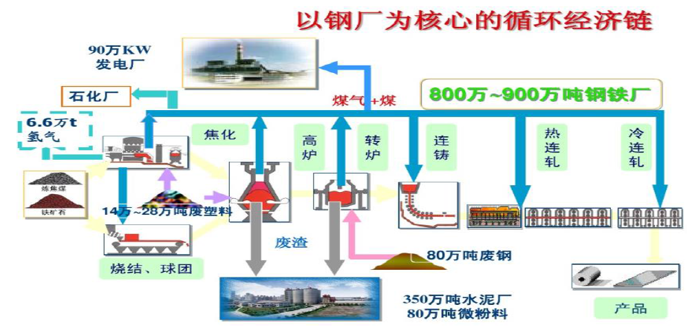 钢铁企业是资源和能源密集型企业,以铁素流和碳素流为主,实现资源的高效提取和能源的高效利用。由于铁矿石中一般会含量少量的锌、铅,在火法冶炼过程中锌、铅会循环富集在粉尘中,因此钢铁企业也是锌、铅资源宝库。